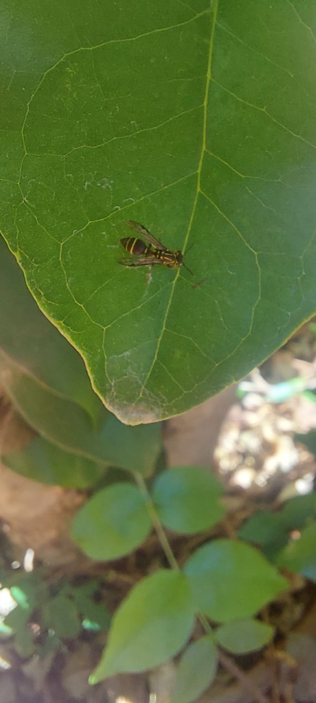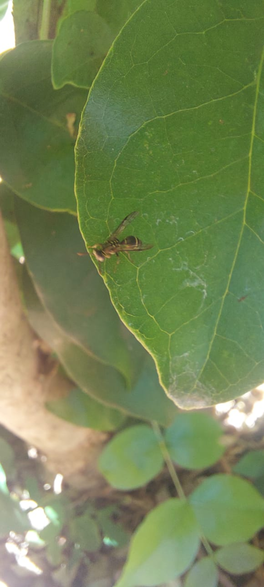 | r0000002006 Loc.: Próximo ao laboratório de comportamento e ecologia de insetos sociais - FFCLRP/USP, Ribeirao Preto, São Paulo, Brazil Coords.: [-21.164123,-47.859020] Observado por: Karen Moreira Malagutti Data: 30-set-2025 14h - 16h Enviado em: 04-out-2025 Notas: A vespa ficou, grande parte do tempo, voando ao redor da planta e apoiando-se nela vez ou outra. Porém, como ela foi vista constantemente voando próximo às flores, pode-se imaginar que ela também estava forrageando em busca de alimentos. | ||||